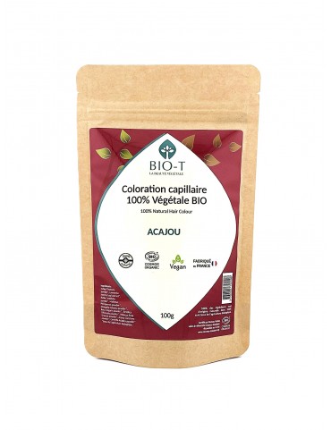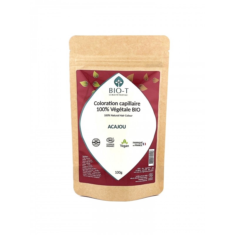 Découvrez la coloration végétale Acajou de BIO-T, une coloration végétale fabriquée en France, 100% naturelle et bio est riche en plantes colorantes. Sa texture crémeuse et sans grumeaux s'applique facilement.